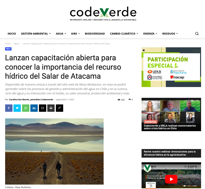 El medio online de información, análisis y discusión sobre desarrollo sustentable, destaca la iniciativa UN VIAJE POR EL AGUA, de la Mesa Multiactor.