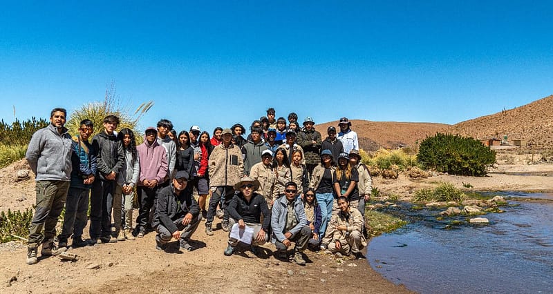 En una iniciativa de la Mesa Multiactor, 32 estudiantes de 3º medio con sus respectivos profesores participaron en un viaje educativo por la cuenca del Salar de Atacama, el que fue guiado por expertos que les explicaron en terreno las características hidrológicas e hidrogeológicas que dominan la zona norte de la cuenca.