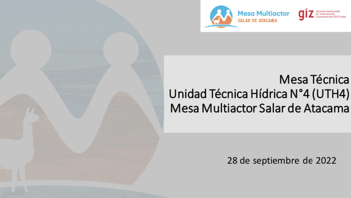 cuenca del Salar de Atacama y aportar a las decisiones de la mesa amplia, la mesa técnica desarrolló una nueva sesión donde se abordaron conceptos fundamentales de la hidrogeología de la UTH4 de la cuenca del Salar de Atacama, (zona del borde norte del Salar de Atacama y el sistema lacustre Soncor).
