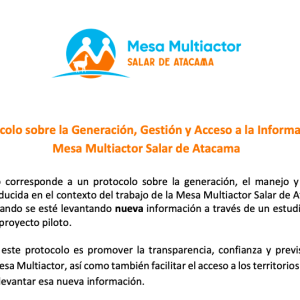 Protocolo sobre generación, gestión y acceso a la información por parte de la Mesa Multiactor Salar de Atacama Fecha de publicación: 2022 Idioma: Español Formato: PDF Peso: 273.17 kb Descargar Ver más >