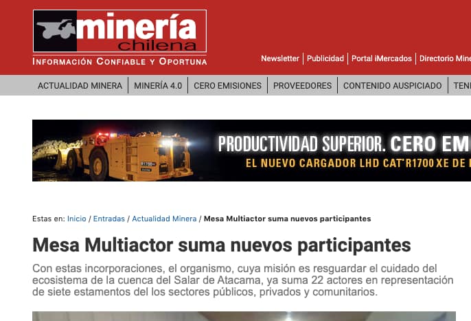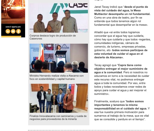 En su edición del 12 de diciembre, el medio especializado en minería da a conocer los nuevos participantes que ha sumado la Mesa Multiactor en los últimos meses, así como el rol de CAPRA en la mejora de la gestión hídrica de San Pedro de Atacama.