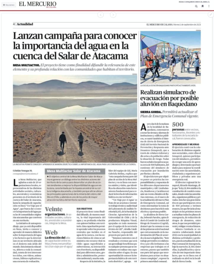 La Mesa Multiactor Salar de Atacama es un espacio de encuentro en el que participan representantes de diversas organizaciones comunitarias, institucionales y gubernamentales, donde se dialoga y se generan iniciativas